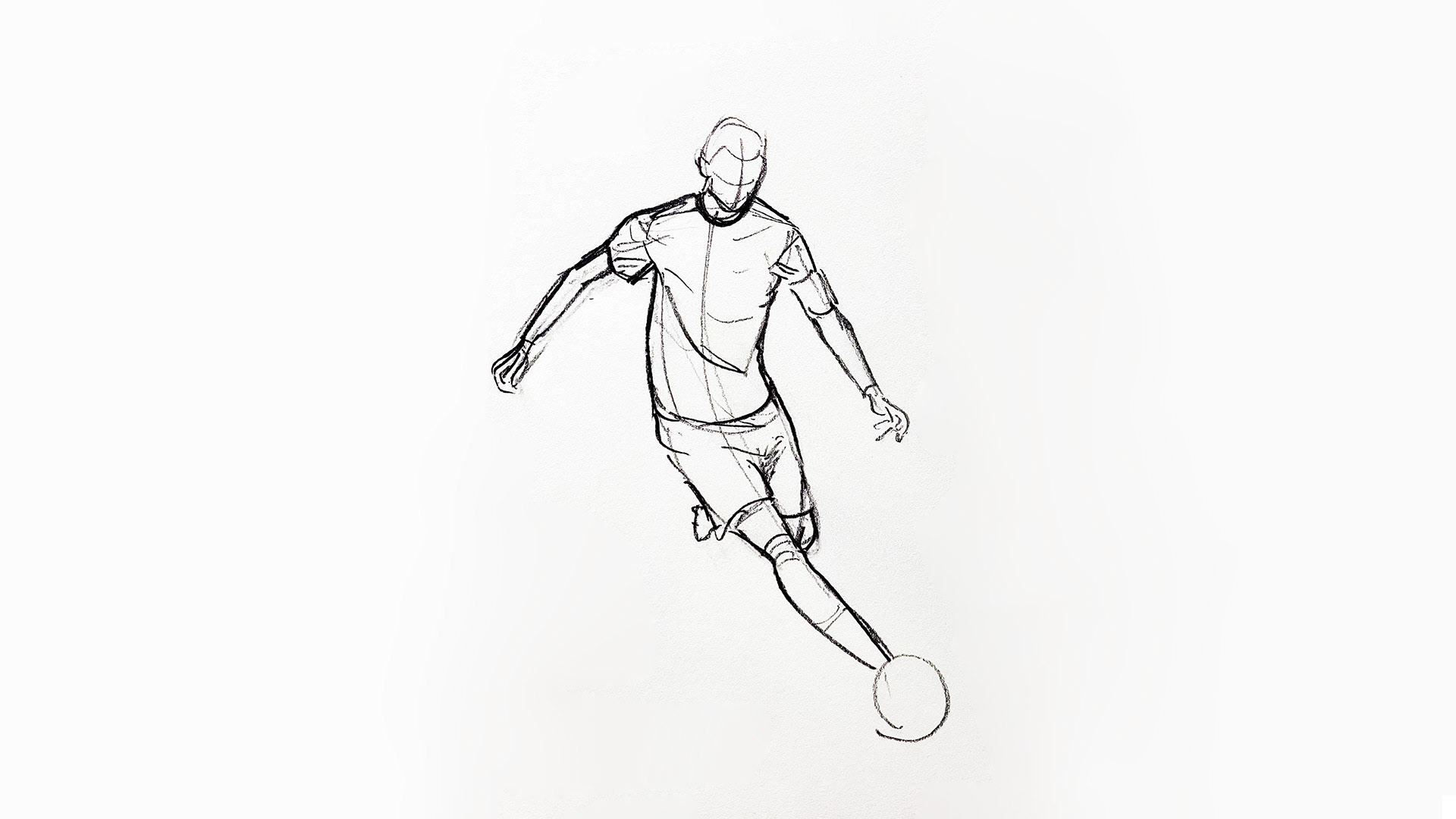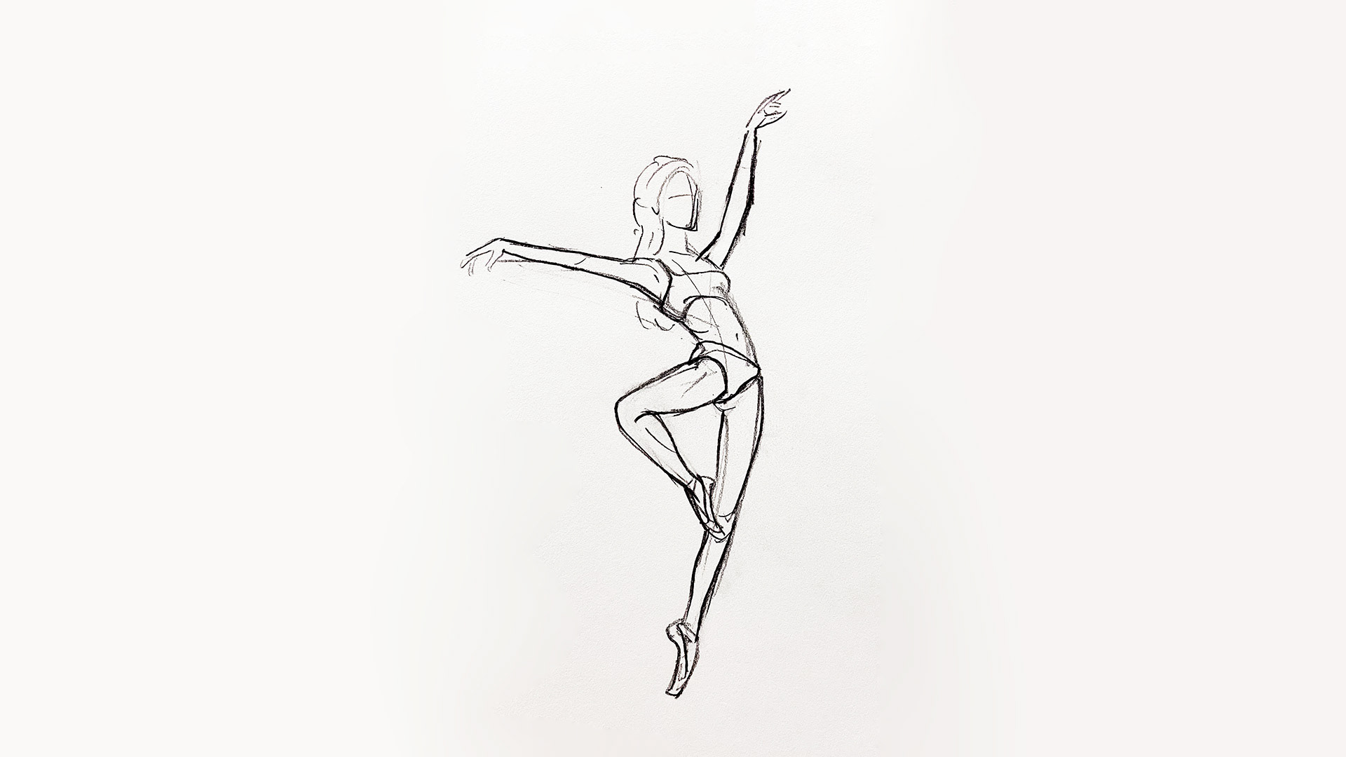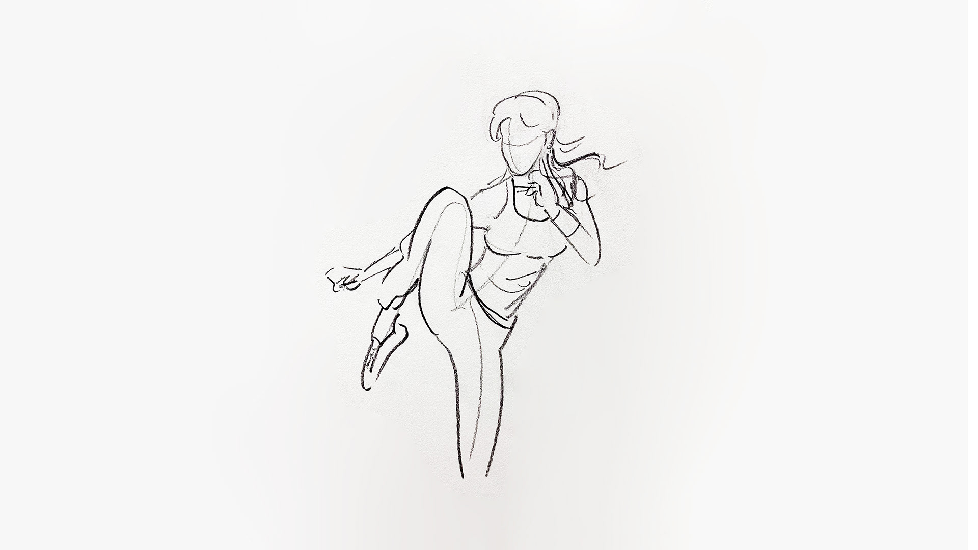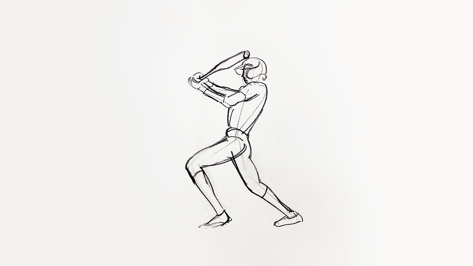 利用動態線快速抓出姿勢的動態後,再以簡單的線條完成整體型態。