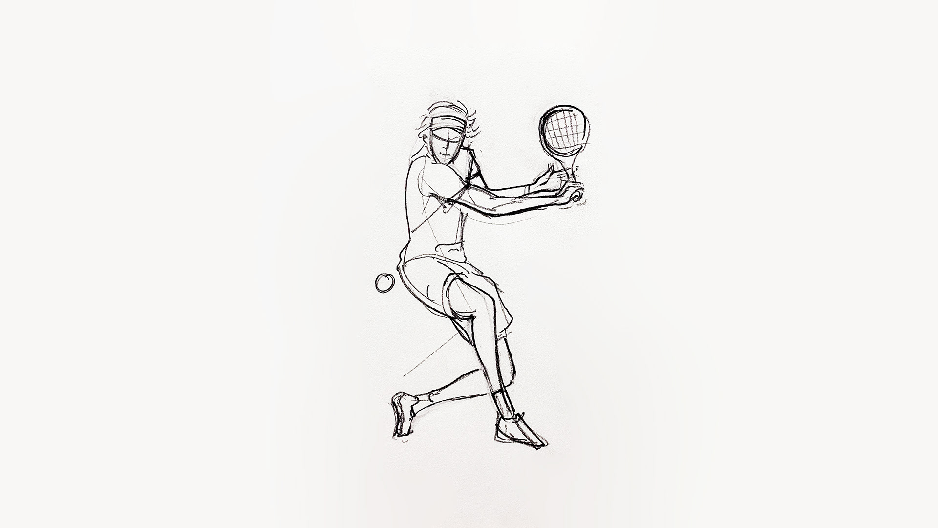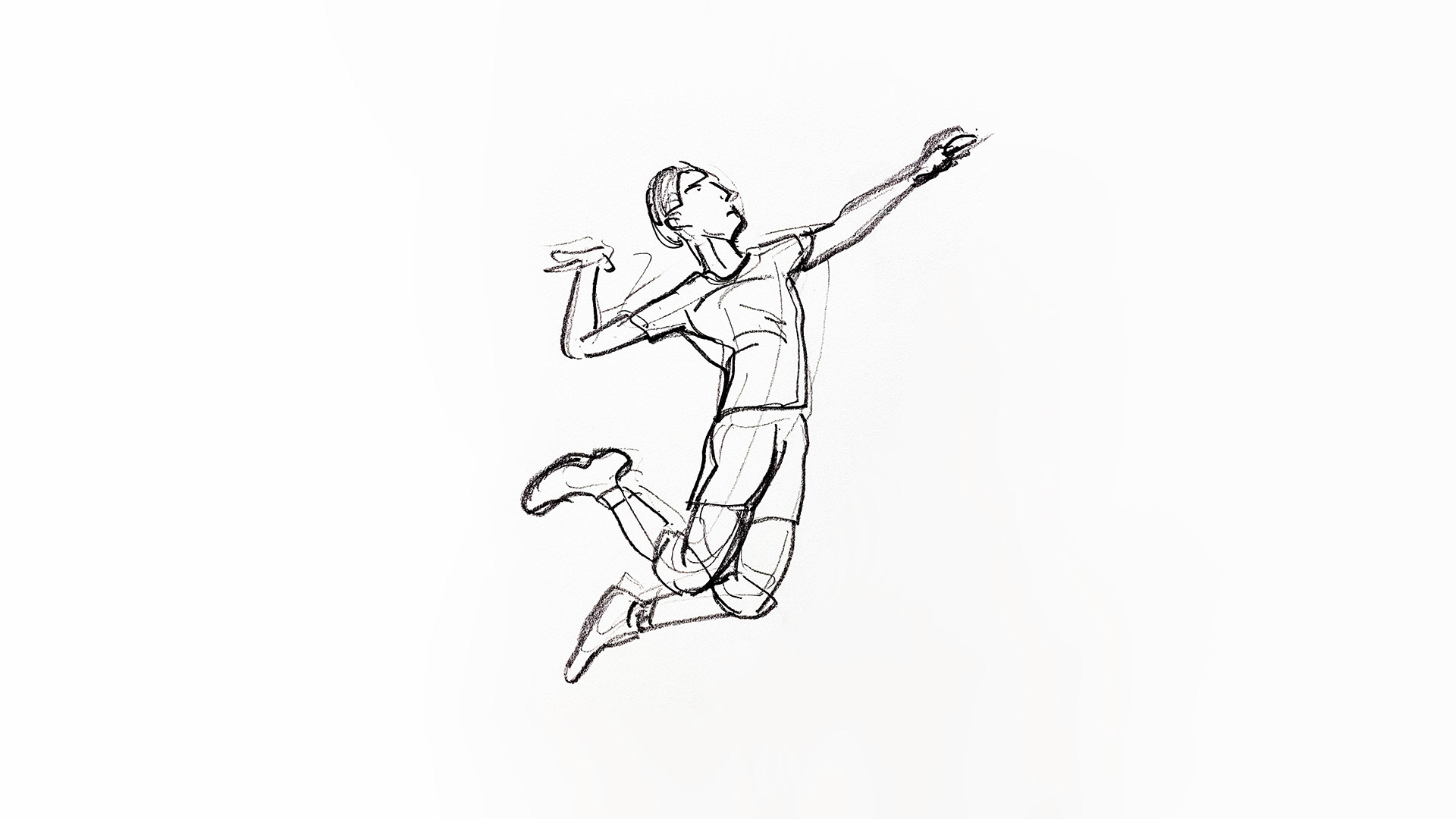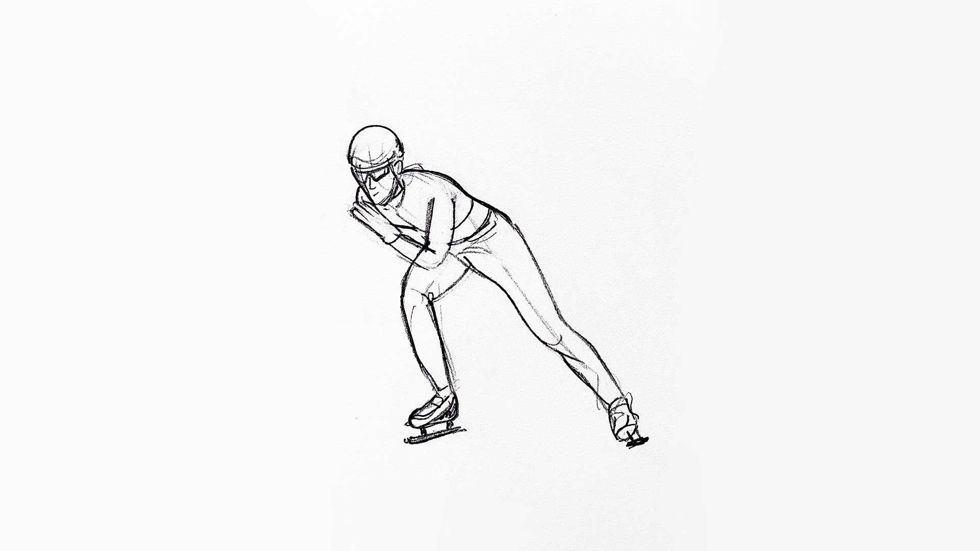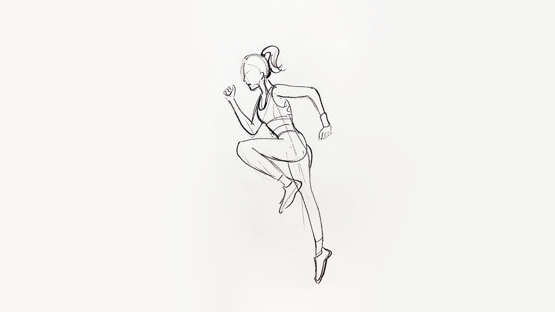 利用動態線快速抓出姿勢的動態後,再以簡單的線條完成整體型態。
