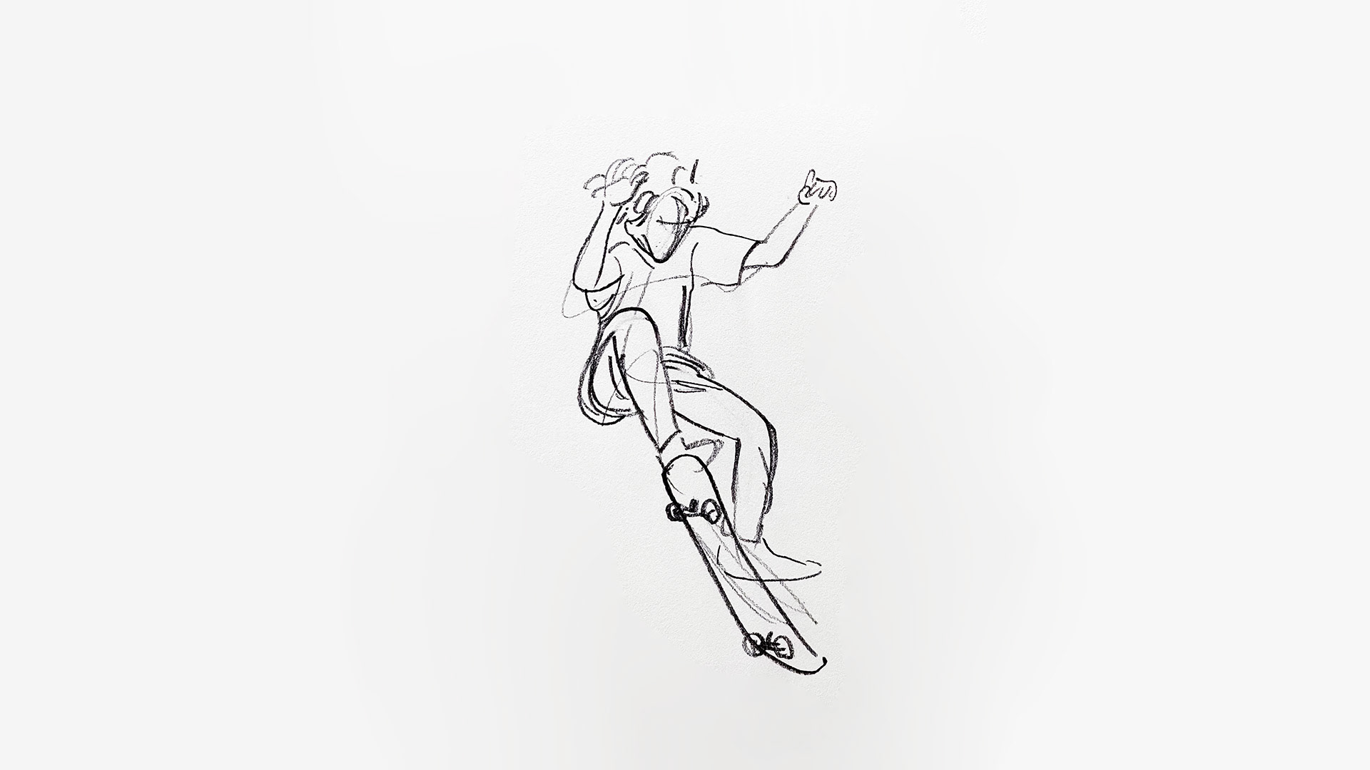 以這種快速抓出動態線、骨架、重心與比例的方式,訓練了我在做角色動畫時對姿態與捕捉重心的精準度。