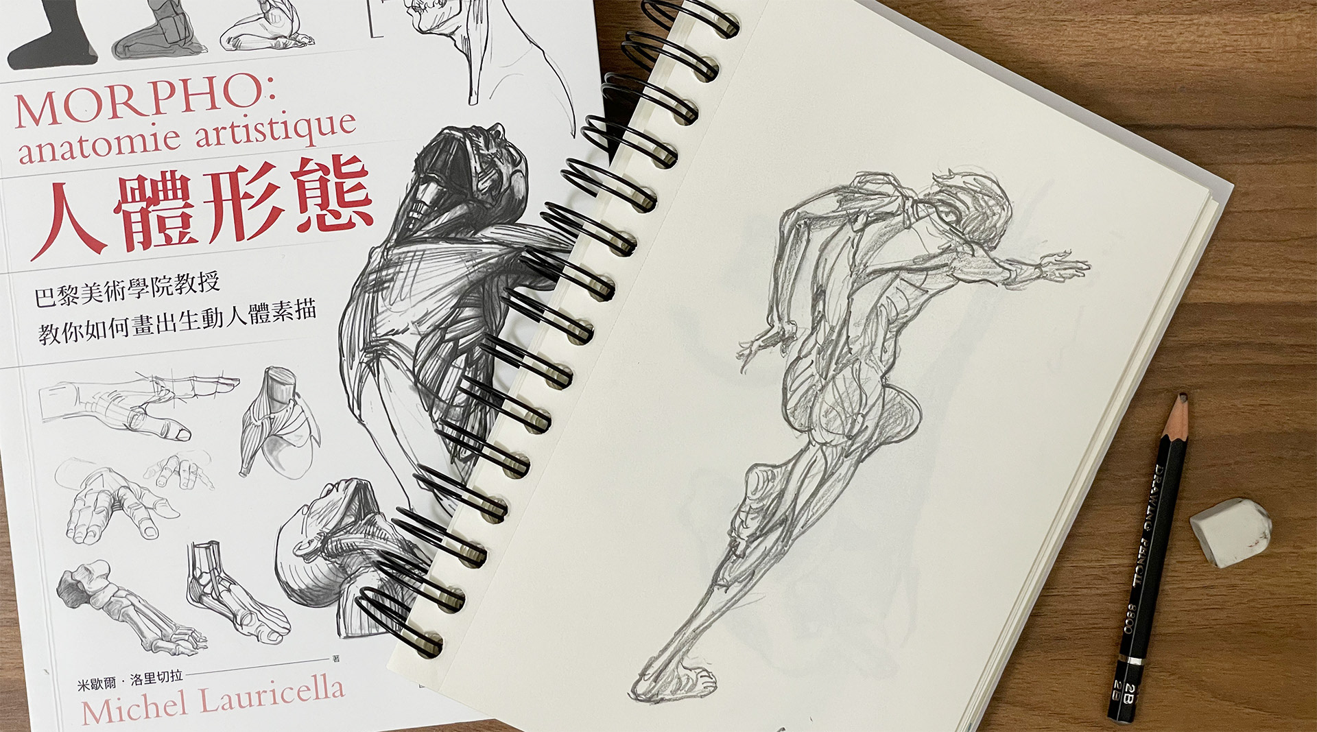 閱讀形態學書籍《人體型態》,以解剖學的角度學習與熟悉人體肌肉、骨骼的結構,並利用書中的圖例進行臨摹,幫助我在做角色動畫時理解每個肢體動作肌肉的彼此連動關係,能夠更好地掌握角色姿勢與其極限和真實性。